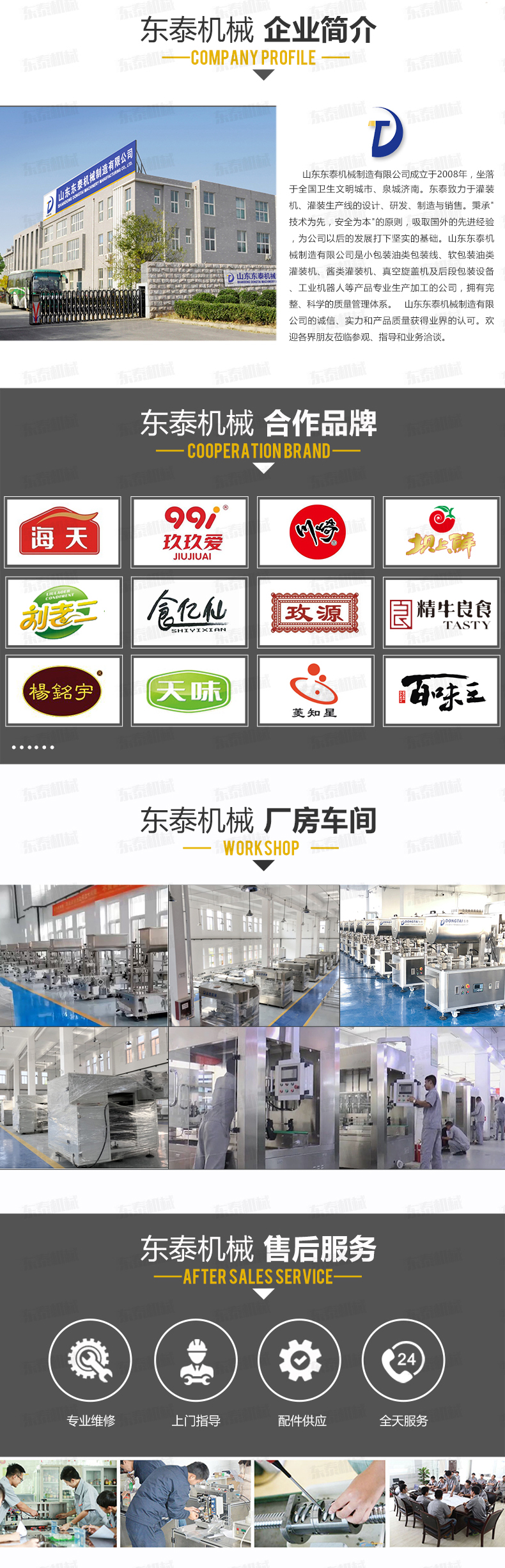 沈陽東泰機械隸屬于山東東泰機械,主營粉劑包裝機、醬類醬料包裝機、食用油灌裝機、食品包裝機、包裝流水線、灌裝生產(chǎn)線等產(chǎn)品,并且為東北地區(qū)客戶提供售后維修服務...