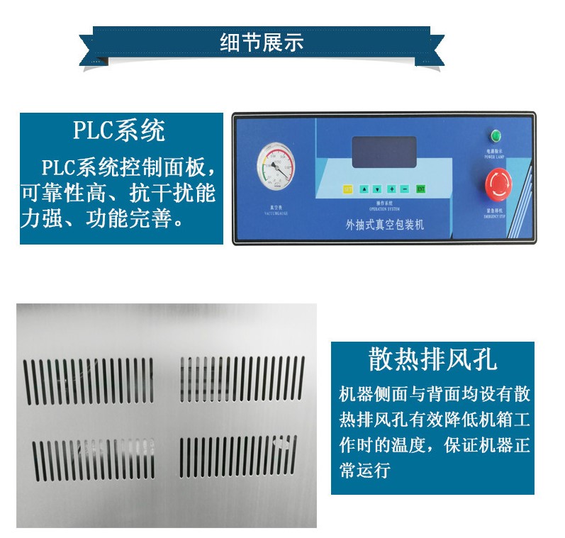 電源 220/50HZ 電機功率 0.36KW 熱封功率 0.95KW 抽氣速率 6.5m³/h 充氣速率