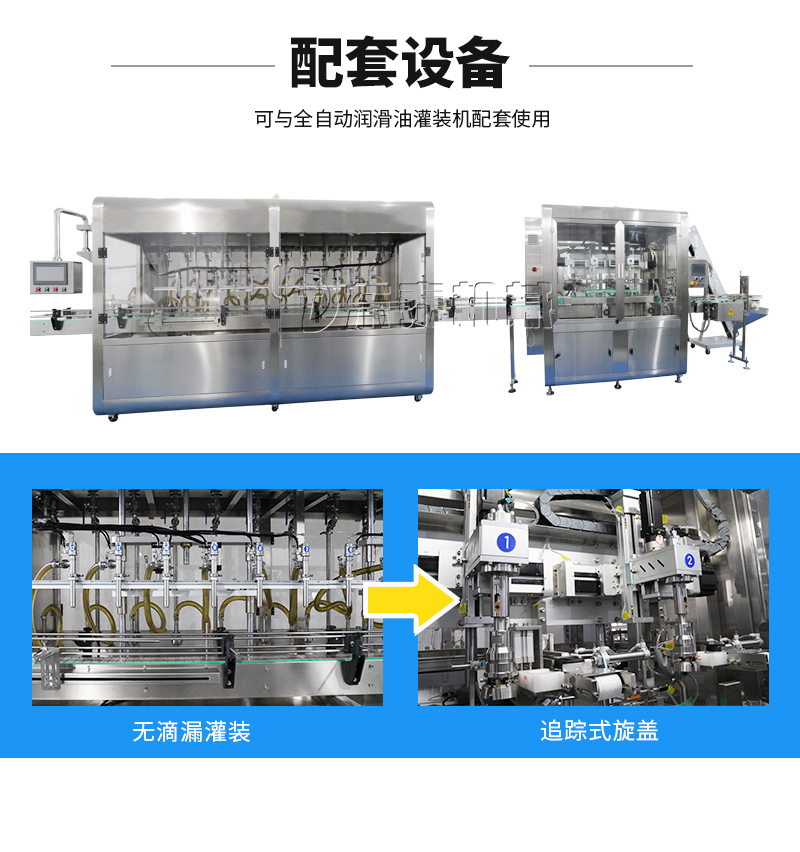 輸送機構(gòu)及控制系統(tǒng)組成。整機結(jié)構(gòu)簡單、調(diào)整方便。該設(shè)備為我司研制,產(chǎn)品在移動過程中,完成旋蓋動作。區(qū)別于常規(guī)旋蓋機,在旋蓋時需要停頓,會使物料晃出瓶口,污染瓶身。該機旋蓋不停頓,有效的避免了旋蓋停頓晃液,保持瓶身清潔。