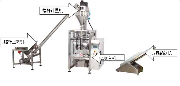 與螺桿計(jì)量機(jī)組合,可以包裝粉劑類的各種產(chǎn)品。如:面粉、生粉、豆粉、奶粉、葡萄糖粉、冰淇淋粉、胡椒粉、魚飼料粉、咖喱粉、可可粉、洗衣粉、堿粉、有機(jī)化肥等。