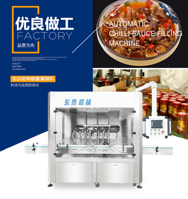 全自動辣椒醬類醬體灌裝生產(chǎn)線作為公司新研發(fā)的灌裝設(shè)備在市場上起到了關(guān)鍵性的作用,獨特的技術(shù)讓整個包裝市場變得富有生命力,是集光,機(jī),電,氣于一體,采用活塞式定量原理,灌裝精度高,操作簡單,維護(hù)方便,設(shè)備主要材質(zhì):采用SUS304不銹鋼制造,符合衛(wèi)生要求.灌裝過程采用亞克力透明板與外界隔離,保證灌裝的衛(wèi)生要求。灌裝采用壓力式灌裝,無需配裝高位罐,簡化了安裝工序,提高了灌裝效率?蓮V泛應(yīng)用于食品、醬料行業(yè)產(chǎn)品的自動化包裝生產(chǎn)。幾乎能夠灌裝所有醬類、醬料物體是該款全自動辣椒醬類醬體灌裝生產(chǎn)線最大的優(yōu)勢,包括大塊肉醬、顆粒醬、濃醬、豆瓣醬、甜面醬、辣椒醬等。