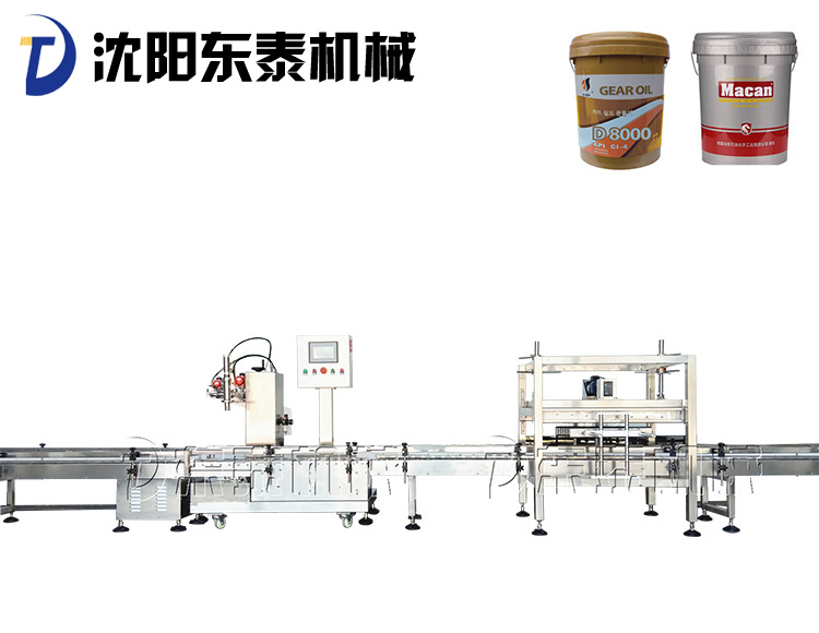 稱重式灌裝封口生產(chǎn)線為半自動單頭稱重式灌裝機(jī)搭配在線式壓蓋機(jī),設(shè)備小巧、實(shí)用適合5-30KG敞口桶的灌裝(其它桶型可定制),灌裝時(shí)由人工放置空桶,并啟動開始按鈕,待灌裝完畢后放蓋并將桶推岀灌裝位置,動力滾筒自動傳送至壓蓋杋進(jìn)行壓蓋。壓蓋完畢后可輸送至成品輸送機(jī)上完成整個(gè)操作過程,全程僅需一人即可完成整個(gè)生產(chǎn)過程。此型號灌裝機(jī)為客戶大大降低了生產(chǎn)勞動成本,是大中小型液體灌裝企業(yè)的理想選擇。