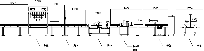 方案設計一:灌裝機+壓蓋機+貼標機+自動膠帽熱縮機+噴碼機+封箱機